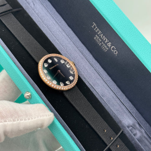 Tiffany & Co. Cocktail Oval Diamond Bezel Women’s Watch – Black Dial, Rose Gold Case