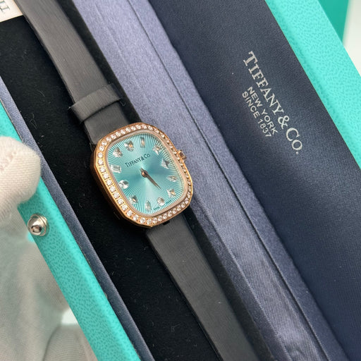 Tiffany & Co. Cushion Diamond Bezel Watch – Tiffany Blue Dial in Rose Gold