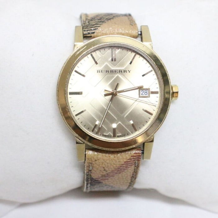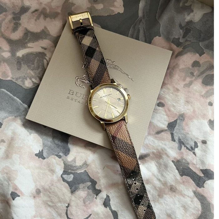 Burberry Gold Dial Watch with Iconic Check Fabric - Authentic