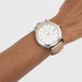 A timeless design from Burberry, this watch showcases a clean silver dial with minimalist hour markers and a subtle date window. The soft beige check strap delivers iconic Burberry style with everyday comfort. Swiss-made precision meets classic British elegance in this refined accessory.