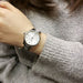 A timeless statement of elegance, this Burberry women’s watch features a minimalist silver-tone dial with date display, enclosed in a sleek stainless steel case. The iconic black, white, and red Burberry check fabric strap adds a distinct British flair. Swiss-made precision and refined design make it perfect for everyday sophistication.
