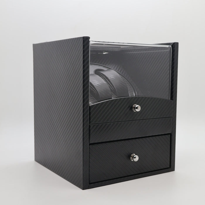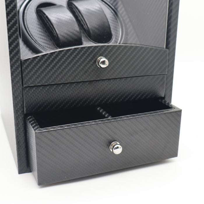 Luxury Dual Watch Winder – Carbon Fiber Finish with Drawer Storage