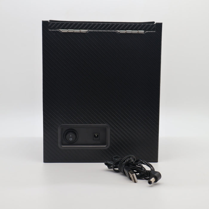 Keep your automatic watches running flawlessly with this high-end Dual Watch Winder, featuring a sleek carbon fiber textured design. Designed to mimic the natural wrist movement, this electric winder ensures your timepieces are always wound and ready to wear.