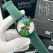 • Strap: Green leather with white stitching and Montblanc branding