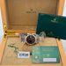 Dial: Chocolate brown sunburst dial with luminous hour markers