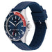 Bezel: Bi-color (blue & red) diver-style rotating bezel